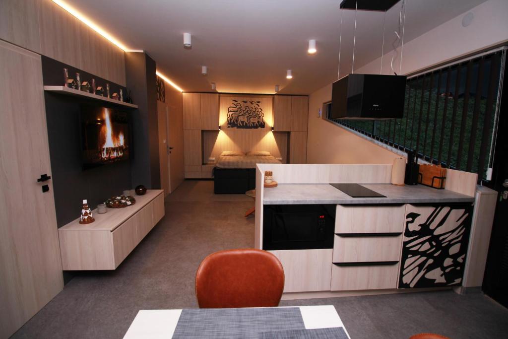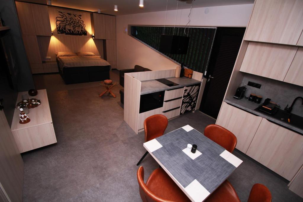 Celé štúdio • 1 kúpeľňa • 1 kuchyňa • 50m²• 1 terasa • 6m²